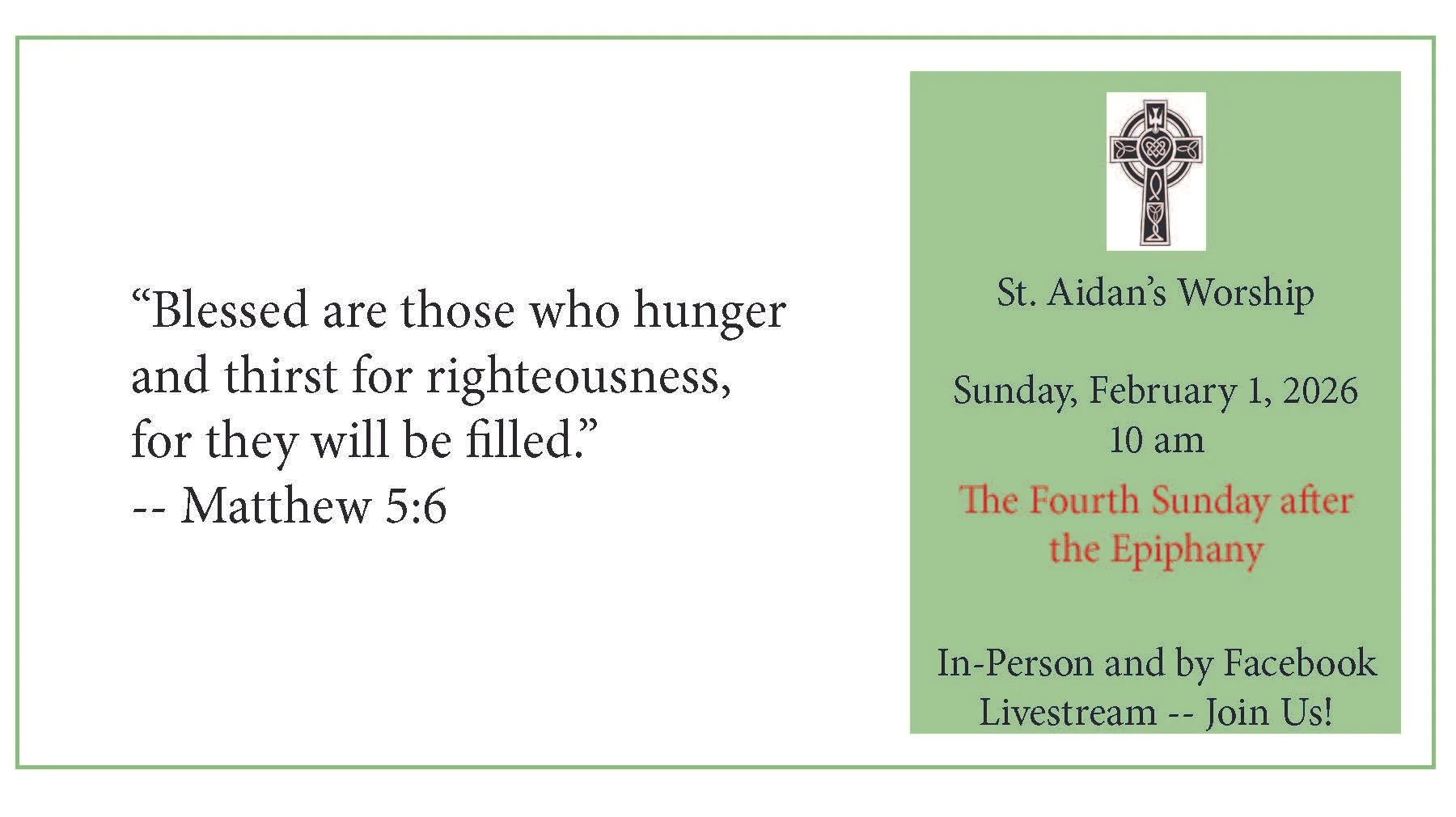 Join us for worship this Sunday, February 1, 2026 at 10 am!
